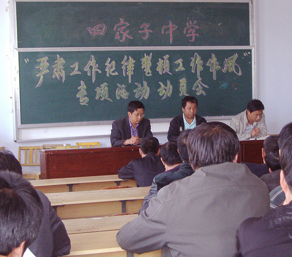 5月21 日下午,敖汉旗四家子中学召开“严肃工作纪律整顿工作作风”专题会。学校全体教职员工全部参加本次会议。