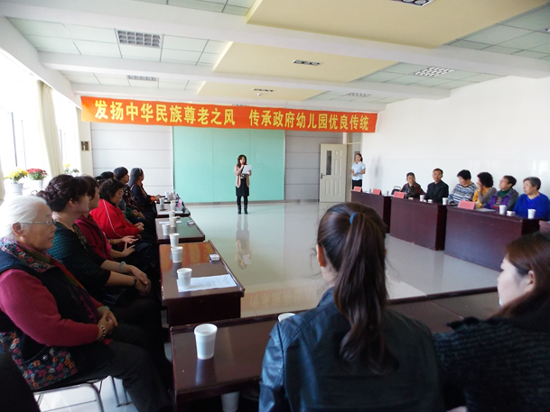 "飞火流霞迎盛世,欢歌笑语贺华章"。在这云淡山清、秋高气爽、橘红橙黄、金桂飘香的日子里,我们又迎来了传统的节日"重阳节"。重阳节是一个重要的节日,我国自古以来就以农历九月九日重阳节作为尊老敬老的重要习俗。为"发扬中华尊老之风,传承政幼优良传统"赤峰市政府机关幼儿园于2013年10月11日下午与退休的老人们共庆重阳节。