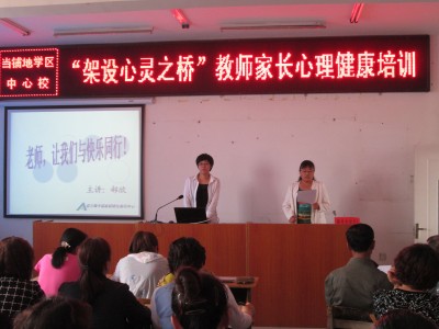 针对竞争的日趋激烈、生活节奏的加快,教师的心理负担越来越重,教师中普遍存在着烦躁、忧郁等不良情绪这一现象,5月26日下午,当铺地学区中心校特意邀请国家二级心理咨询师,高级育婴师,感觉统合训练指导师,心理咨询师培训师、考评员,赤峰市警察学校特约职业心理健康课程讲师郝欣老师与教师及家长代表一同探讨教师应该如何应对各种心理问题。