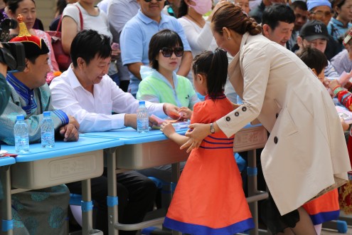 旗人民政府副旗长李晓华,旗教育局局长张旭鹏,副局长满都拉、格日勒图等领导亲切看望参加“六·一”庆祝活动的师生,观看了各校“六·一”庆祝活动文艺表演,向师生表示节日的祝贺,并同师生合影留念。