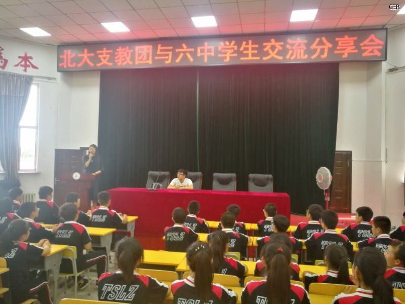 北大学子"援蒙"公益活动走进天山六中,得到了学校上下的高度重视和热烈欢迎。在阶梯教室主会场,校党支部副书记、工会主席邱慧敏同志向同学们分别介绍四位北大学子的基本情况,给同学们以激励和鼓舞。紧接着,四位北大学子又分别深入班级,与六中的孩子们进行互动交流,讲解他们的学习经历,以及北大的校园文化,同时还讲解了趣味历史、如何有兴趣的学习英语等相关知识,并为同学们答疑解惑。同学们积极互动,在交流中开阔了自己的视野,也为今后的学习和生活树立了信心。