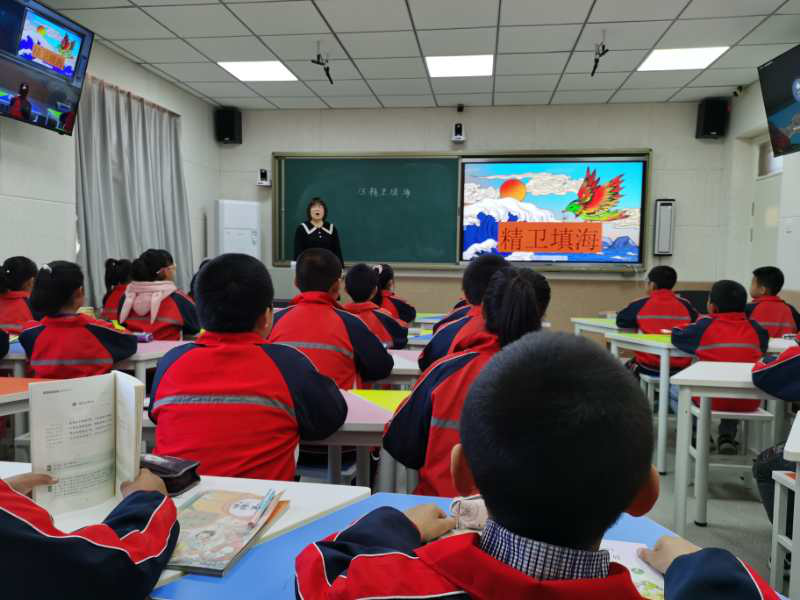 语文集体备课主备人郭程程正在作课《精卫填海》,本文是一篇文言文,虽短小精悍,却字繁音难。因此程程老师先从“读”入手,自读--指名读--听读,从而达到熟读后,理解文章,体会感情由浅入深,环环相扣。最后都达到了熟能成诵。学生们还能自己组织语言讲述该故事,并能和同学相互交流精卫给自己的印象。重点难点顺利解决。