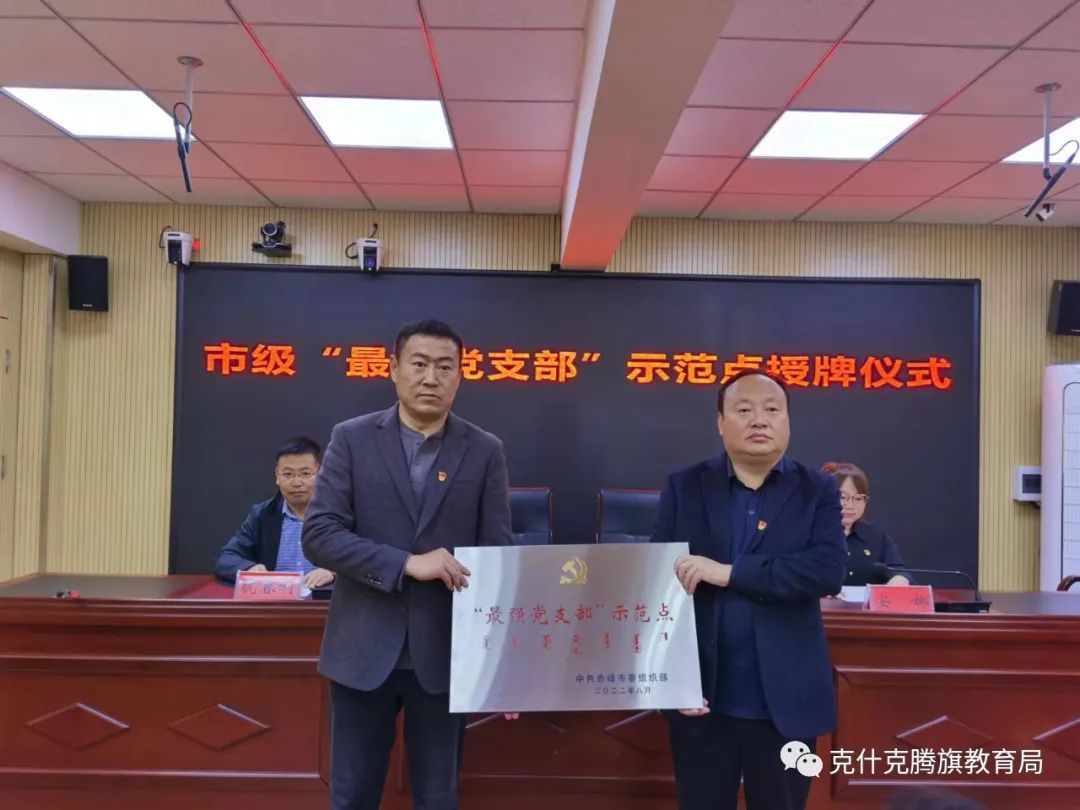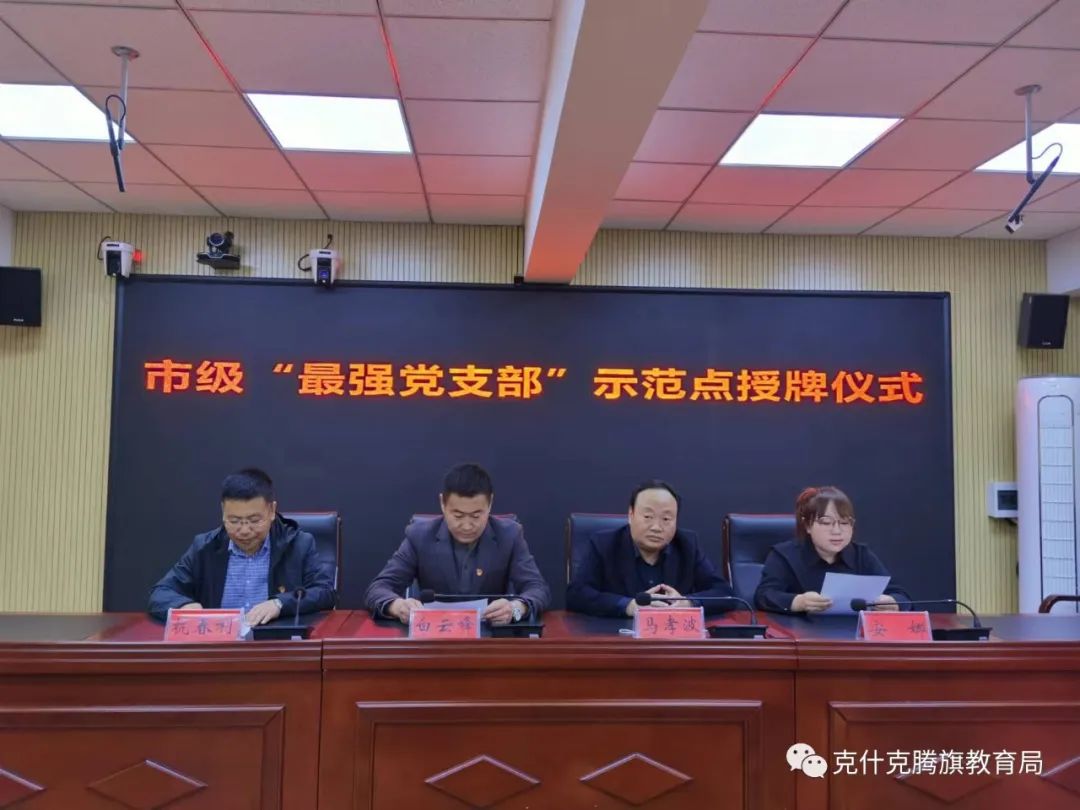 10月11日,在教育局四楼举行为克旗职业技术学校市级“最强党支部”示范点授牌仪式,系统党委和职业技术学校相关领导及工作人员参加了授牌仪式,仪式由教育系统党委办公室主任杭春利主持。