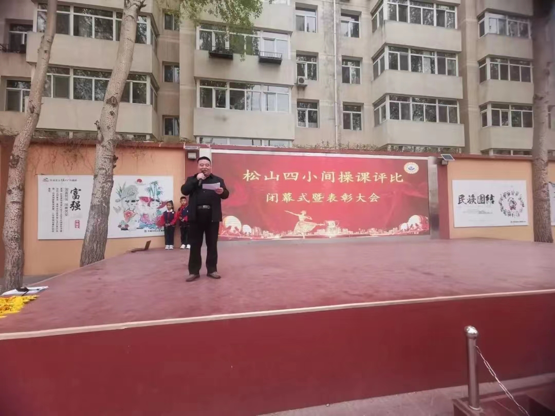 人间最美四月天,不负春光与时行,在这春意盎然,生机勃勃的季节,松山四小于2023年4月25日至27日,利用三个间操课时间,圆满地完成了精彩的课间操评比活动。此次活动旨在践行五育并举,推进阳光体育运动,丰富校园文化生活,增强学生身体素质,培养学生集体荣誉感的一项重要举措。本次比赛全体师生高度重视,各班赛前准备充分,体育教师耐心指导,各位评委考核公平、公正,最终各班以最好的水平,最佳的精神状态展示给大家。比赛结束后,学校对本次比赛取得优异成绩的班级进行了表奖并颁发奖旗。