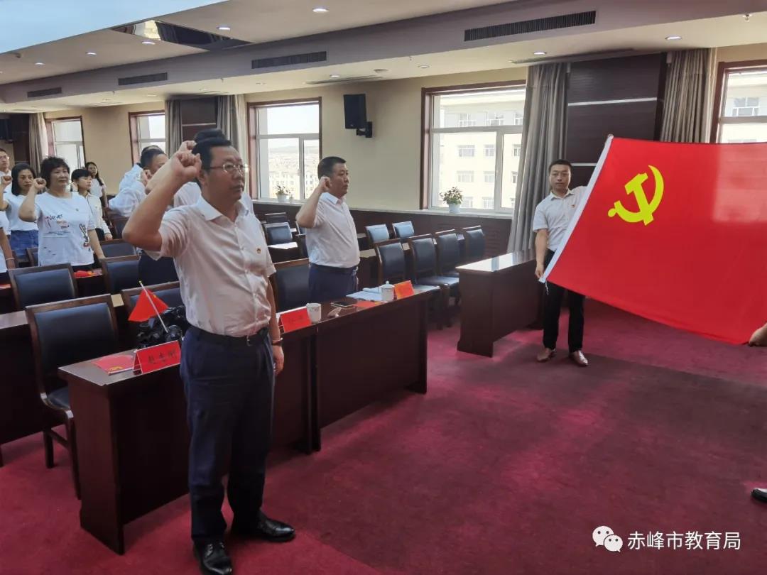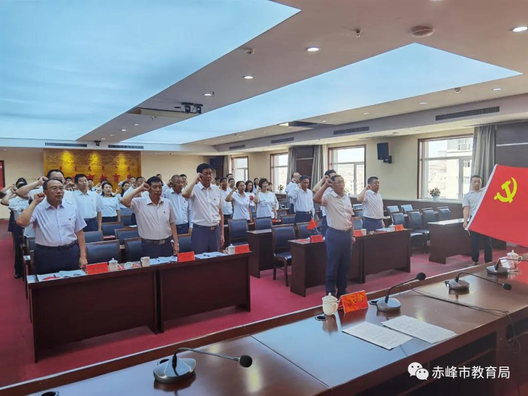 市教育局党组书记、局长赵志刚同志以《风雨苍黄百年路 扎实奋进新征程》为题讲授党课,带领全体党员重温入党誓词。