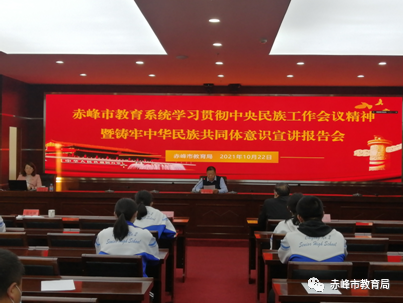 为深入学习宣传贯彻中央民族工作会议精神,铸牢中华民族共同体意识,根据市委宣传部有关部署要求,10月22日下午,赤峰市教育局召开学习贯彻中央民族工作会议精神暨铸牢中华民族共同体意识宣讲会议。