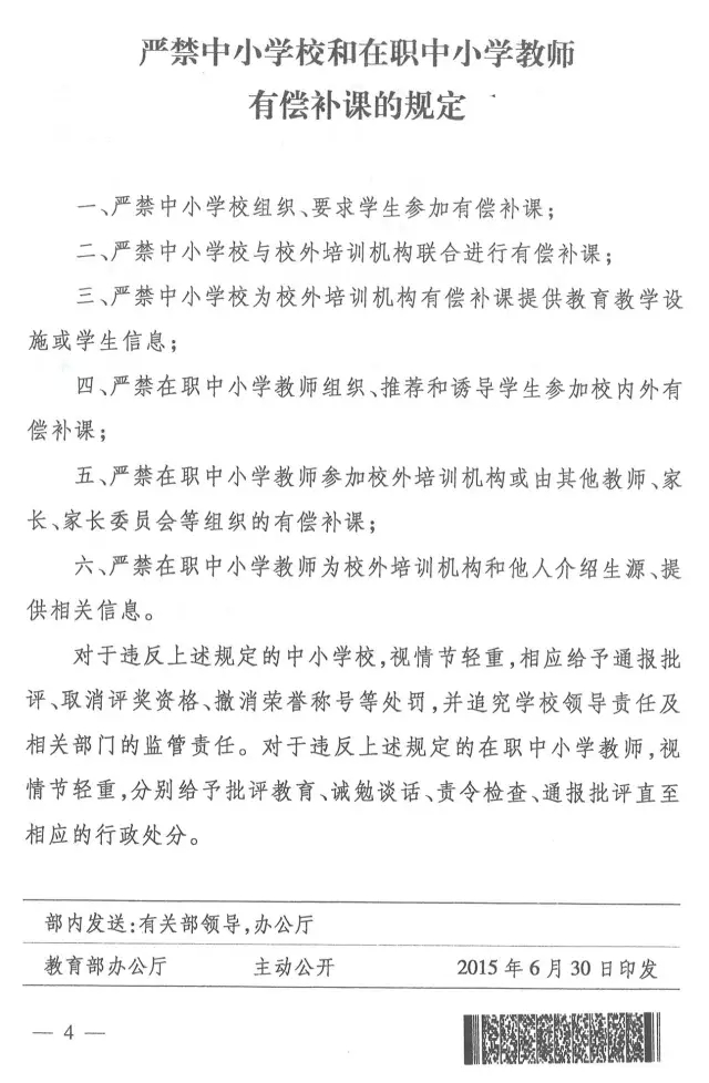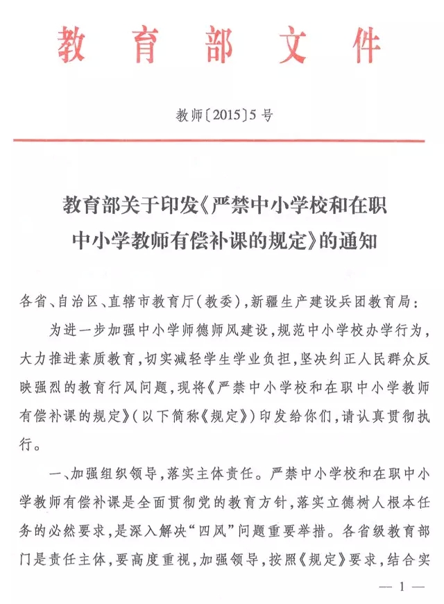 教育部《严禁中小学校和在职中小学教师有偿补课的规定》的通知(全文)