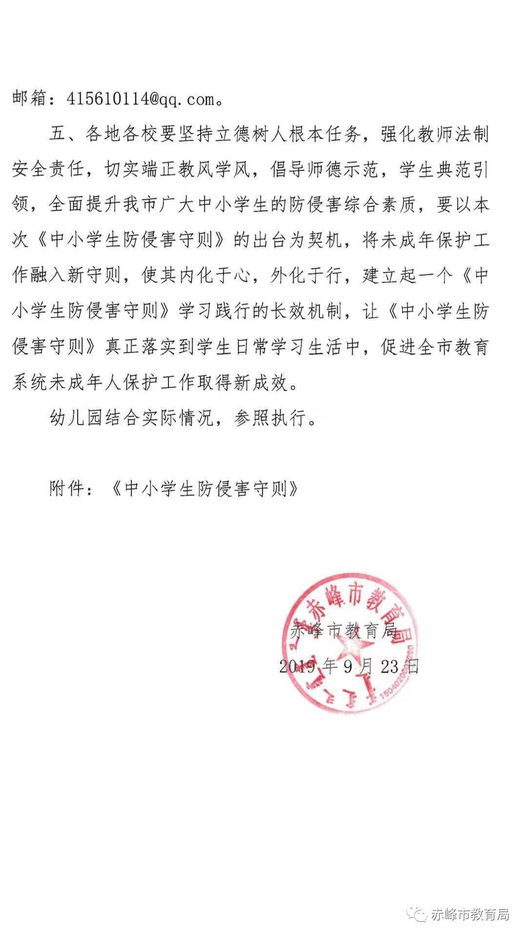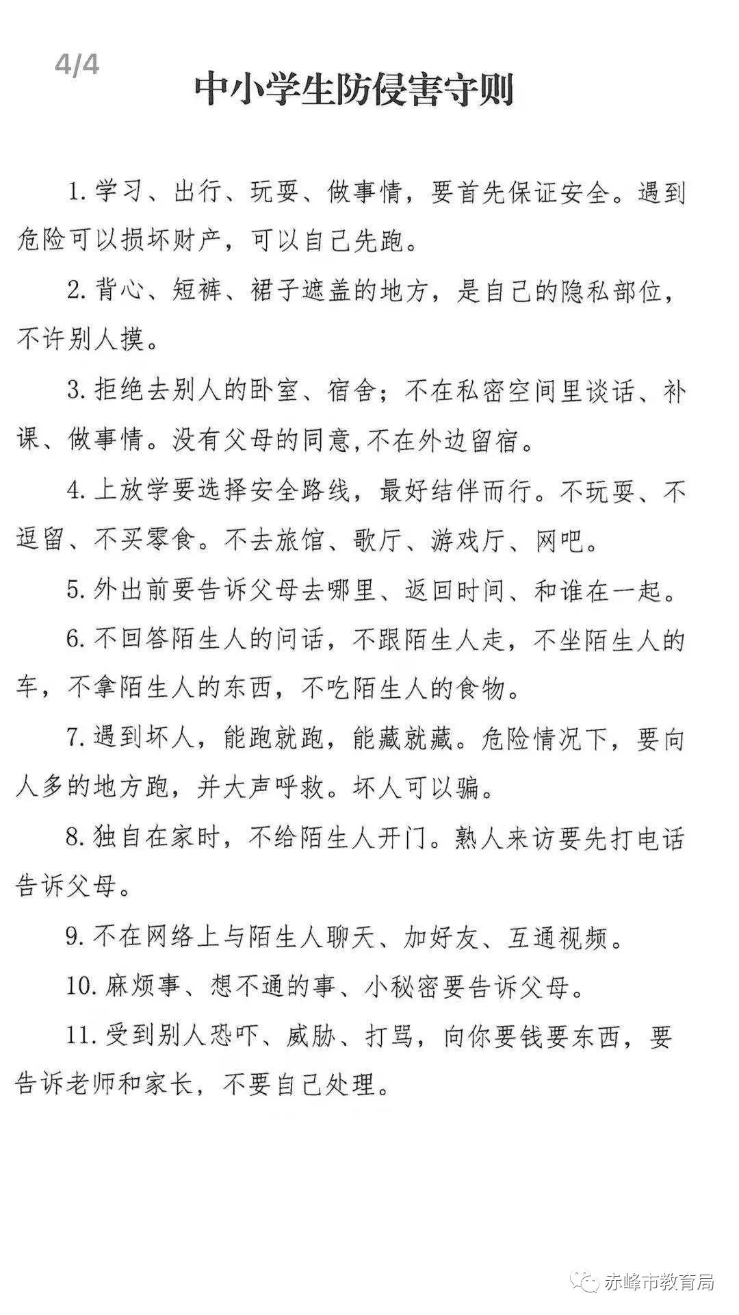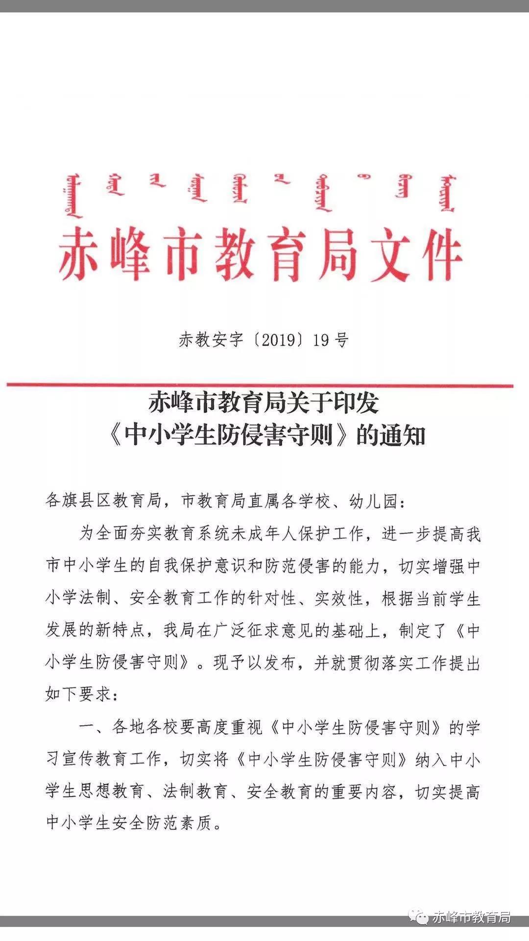 赤峰市教育局印发《中小学生防侵害守则》的通知