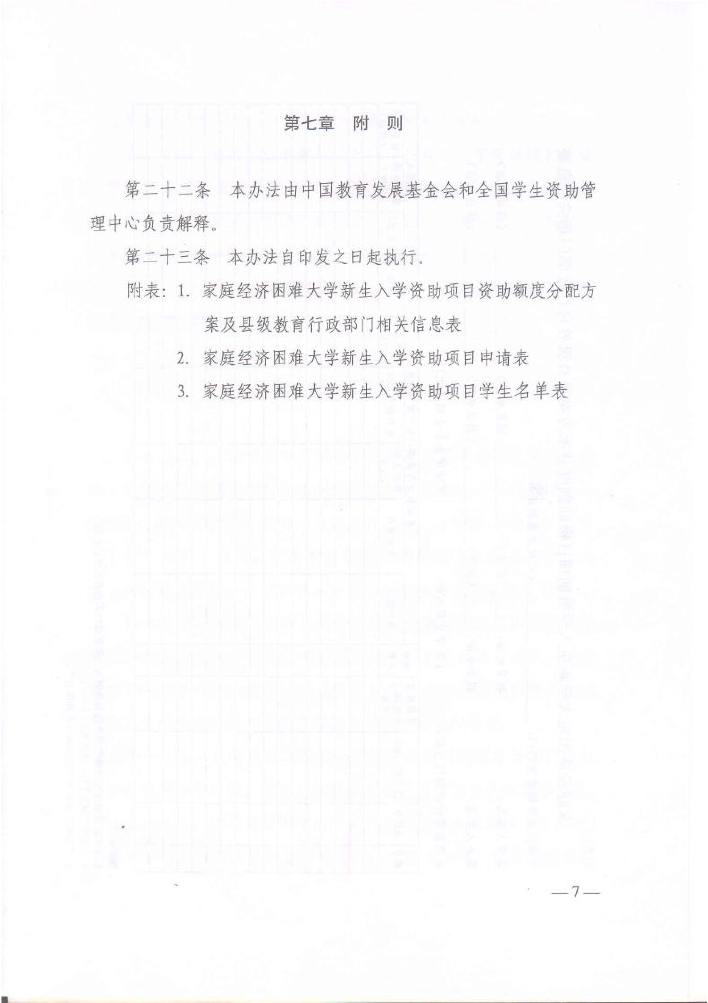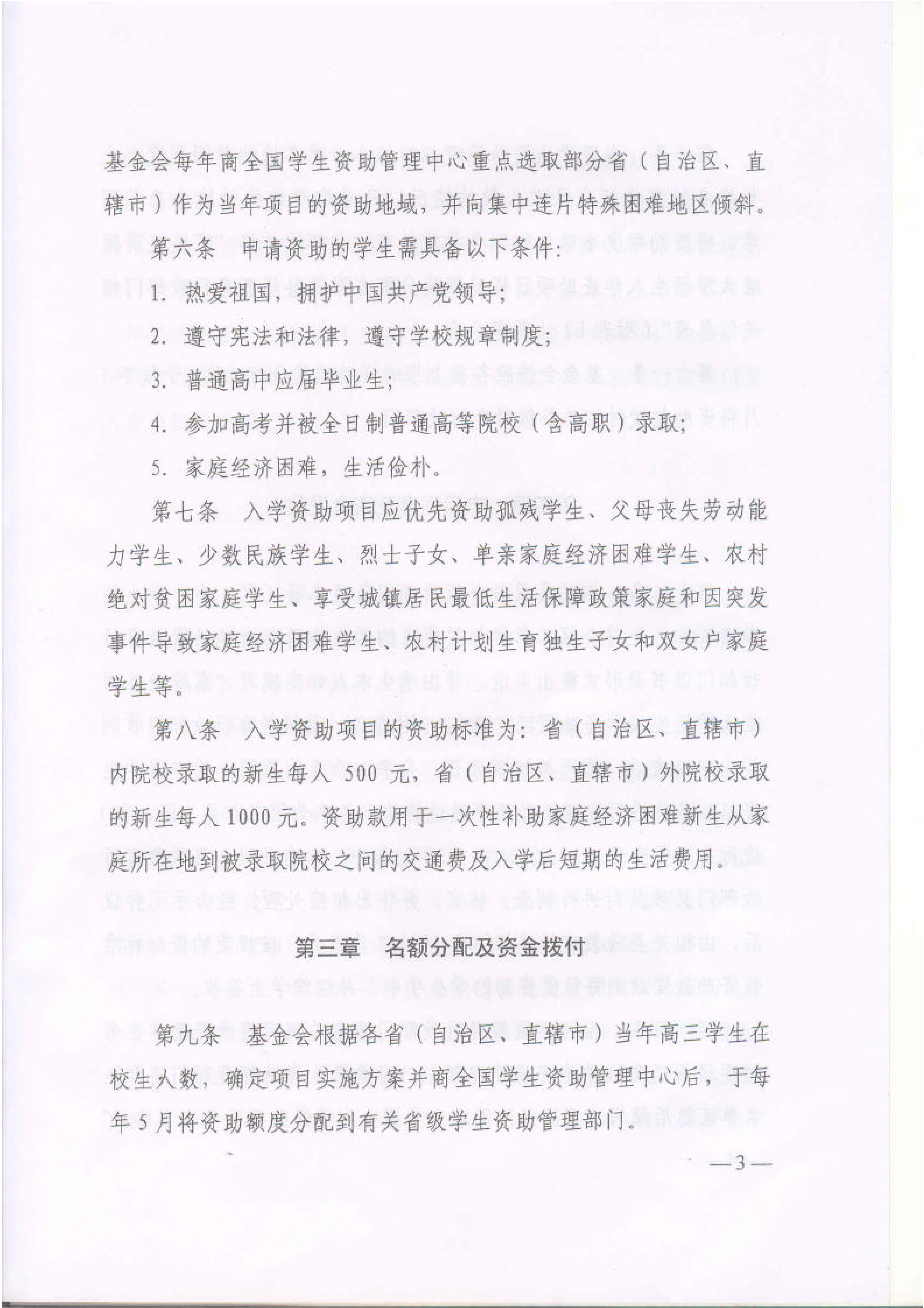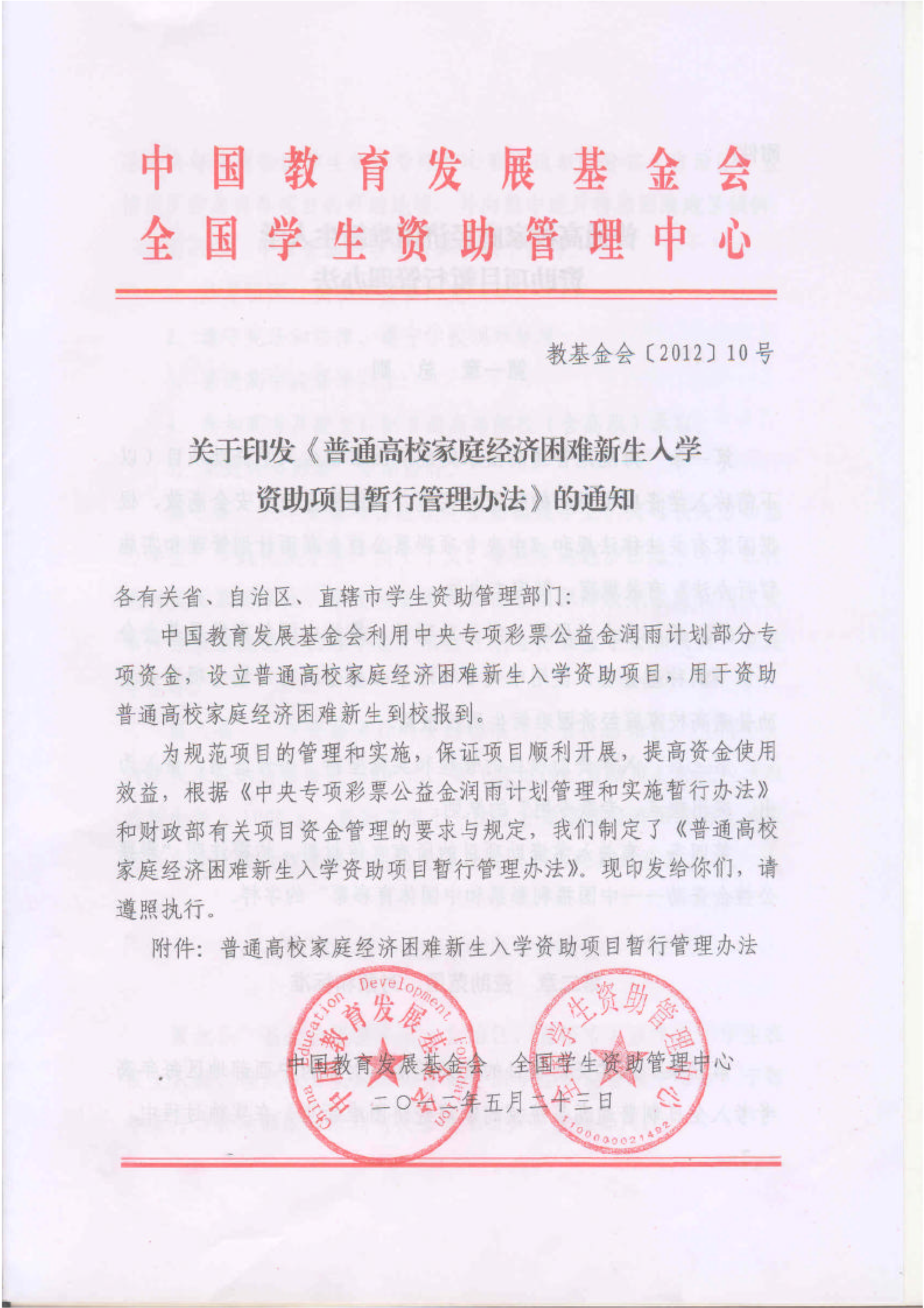 《普通高校家庭经济困难新生入学资助项目暂行管理办法》