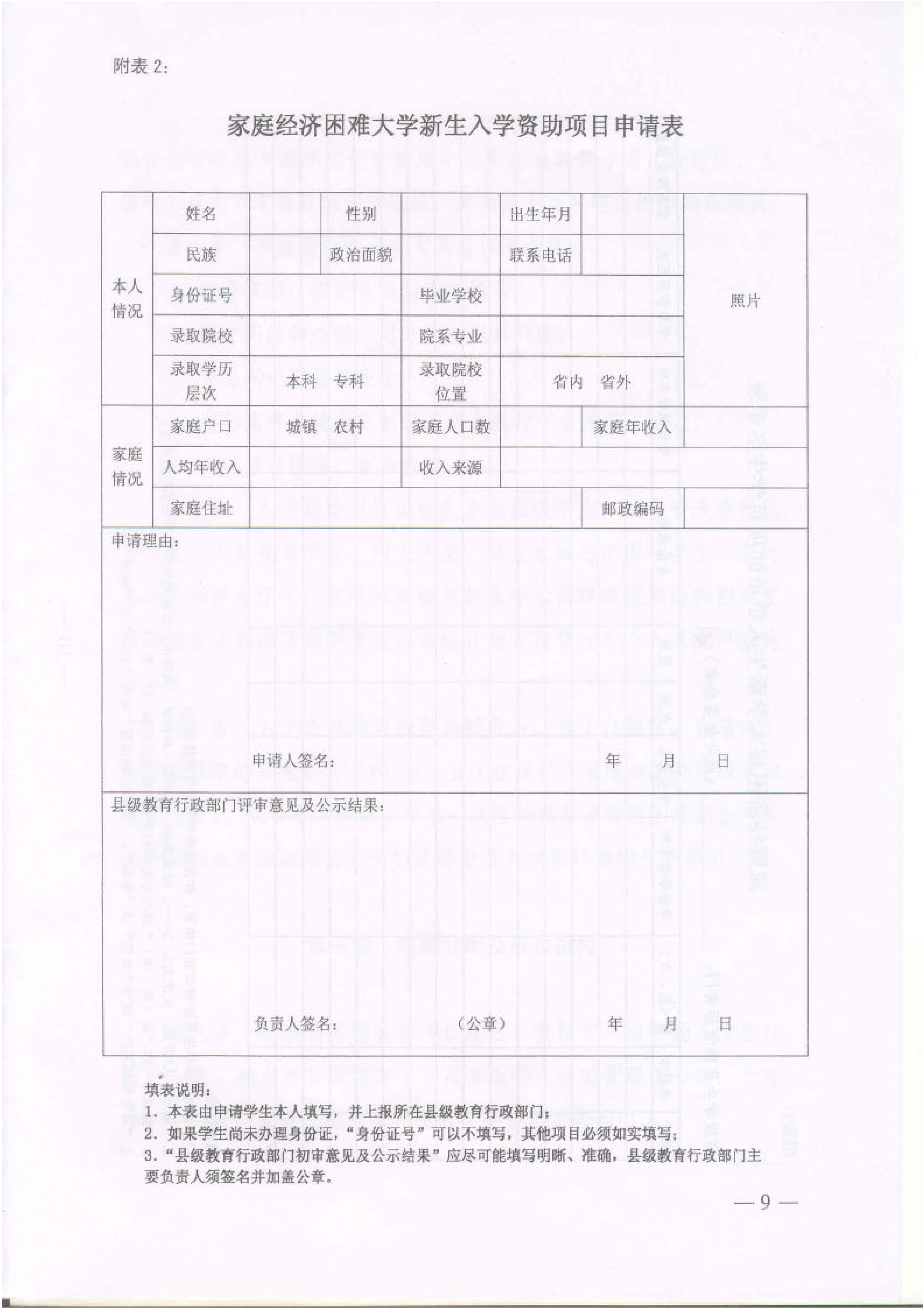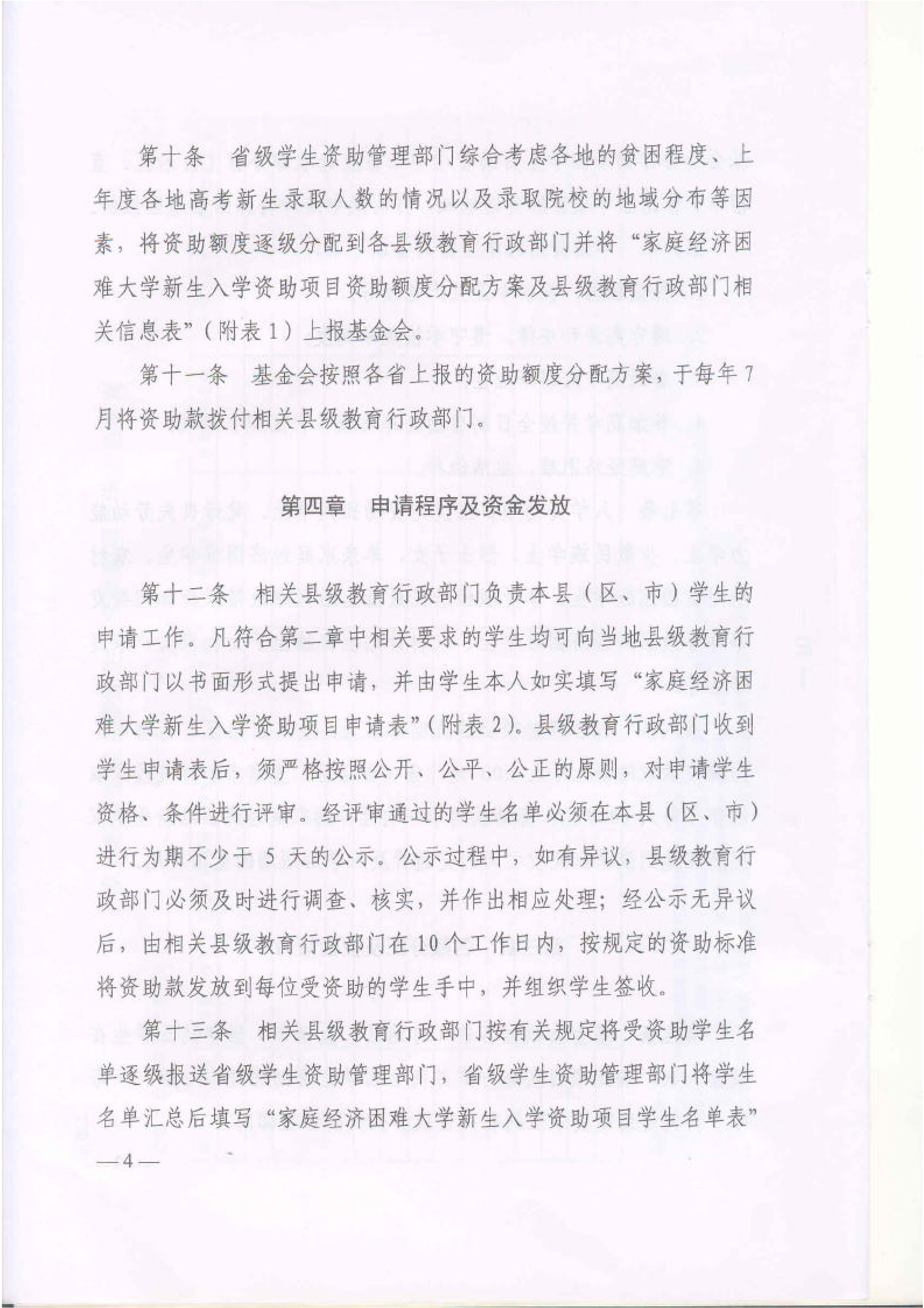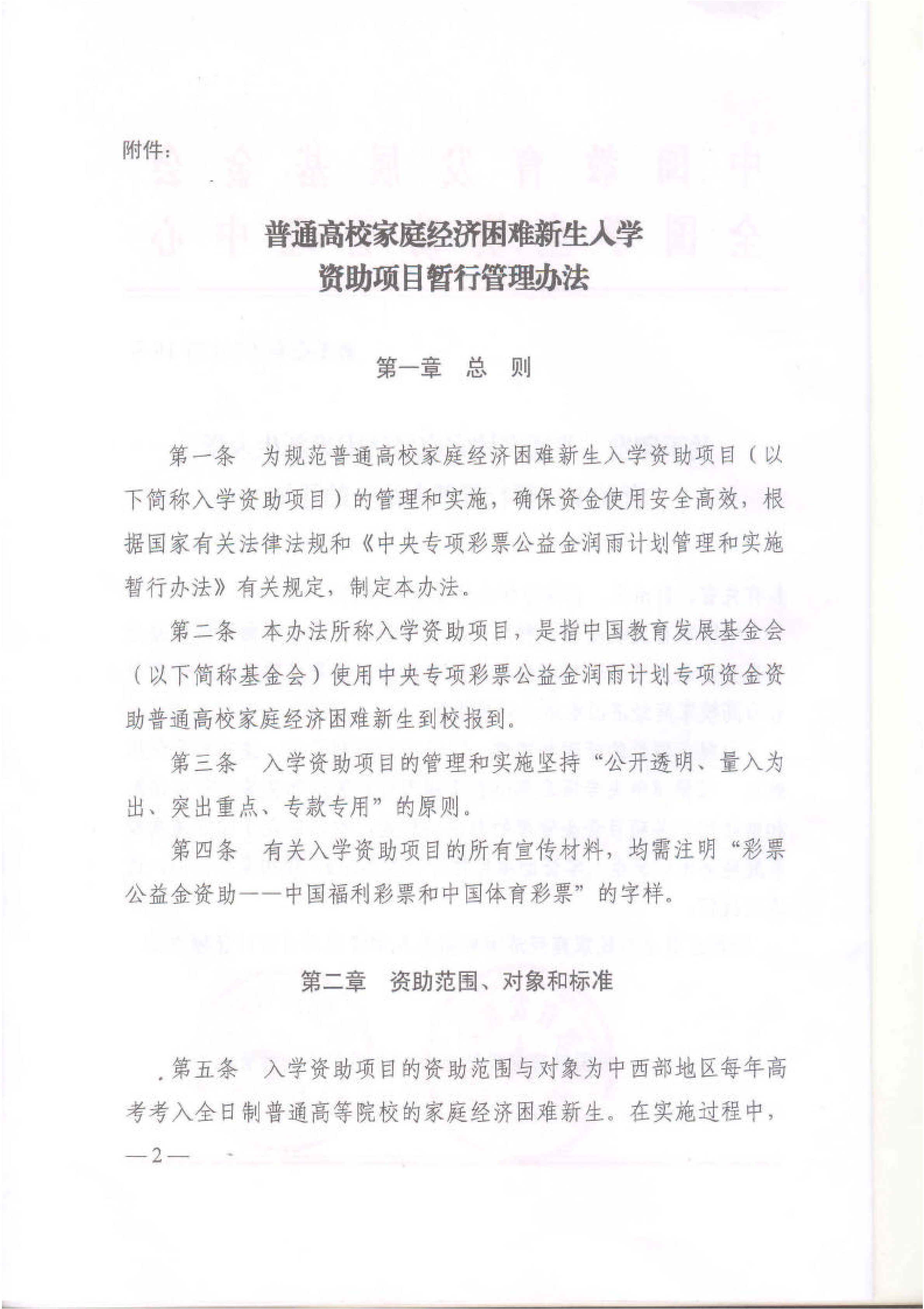 《普通高校家庭经济困难新生入学资助项目暂行管理办法》
