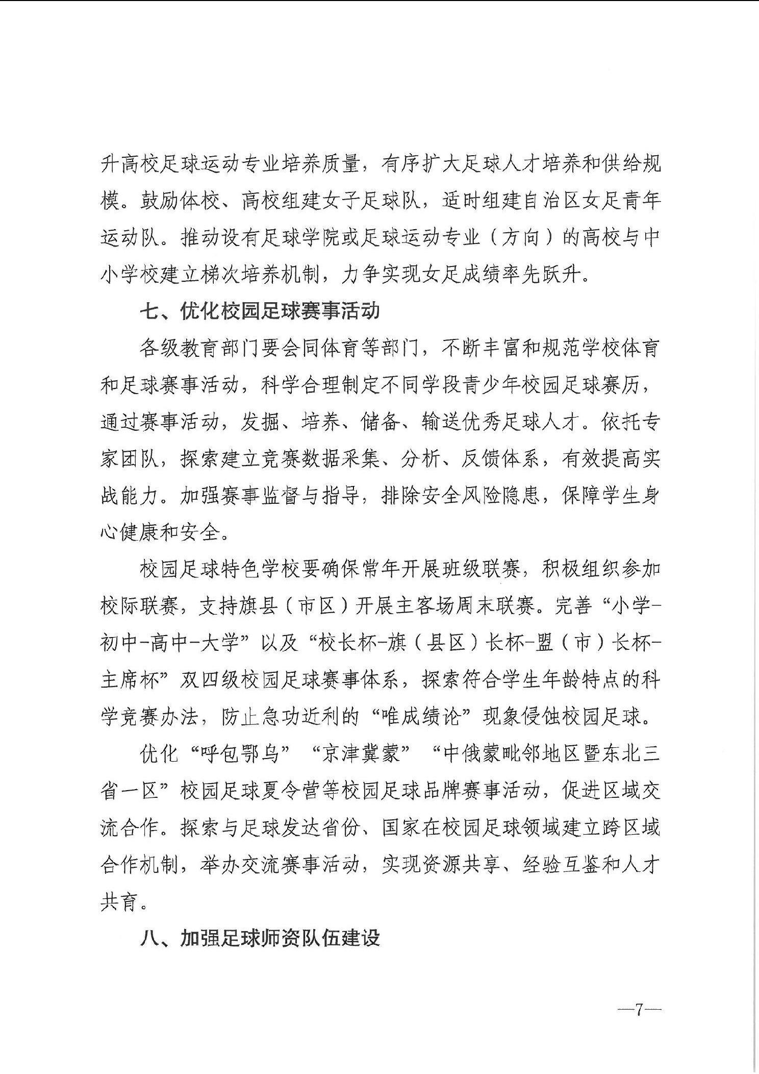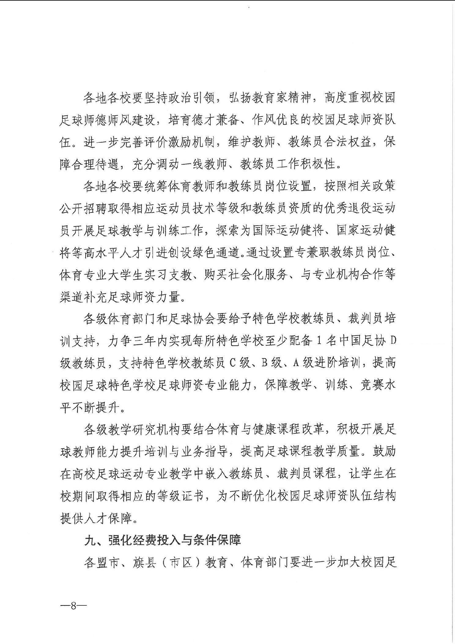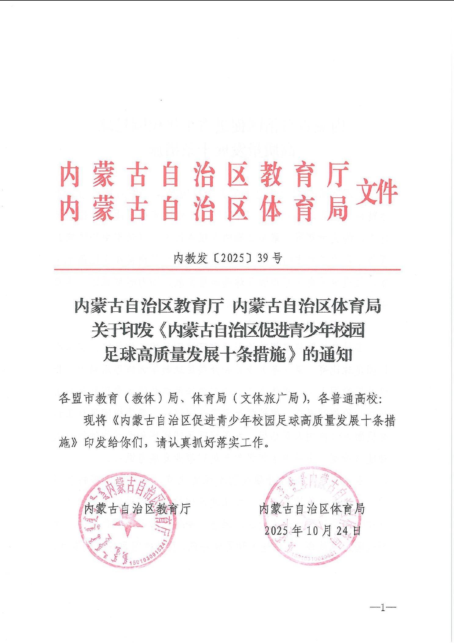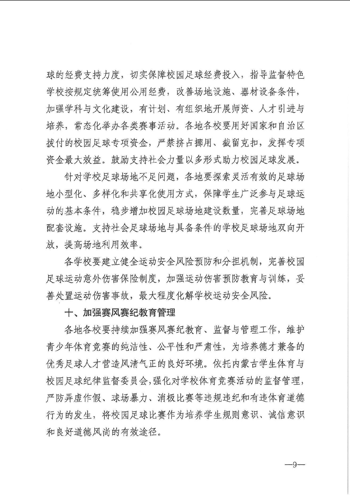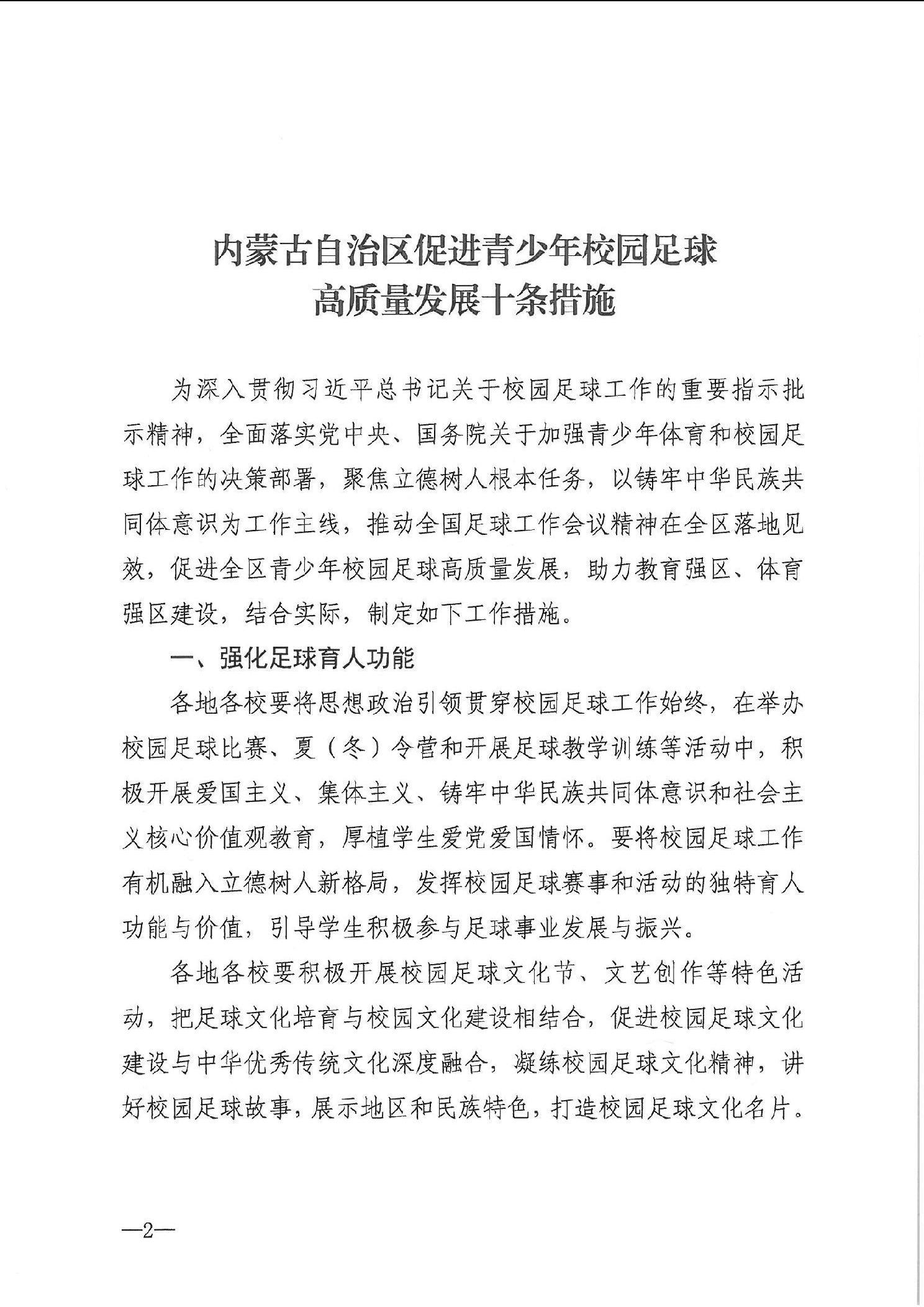 内蒙古自治区教育厅 内蒙古自治区体育局关于印发《内蒙古自治区促进青少年校园足球高质量发展十条措施》的通知